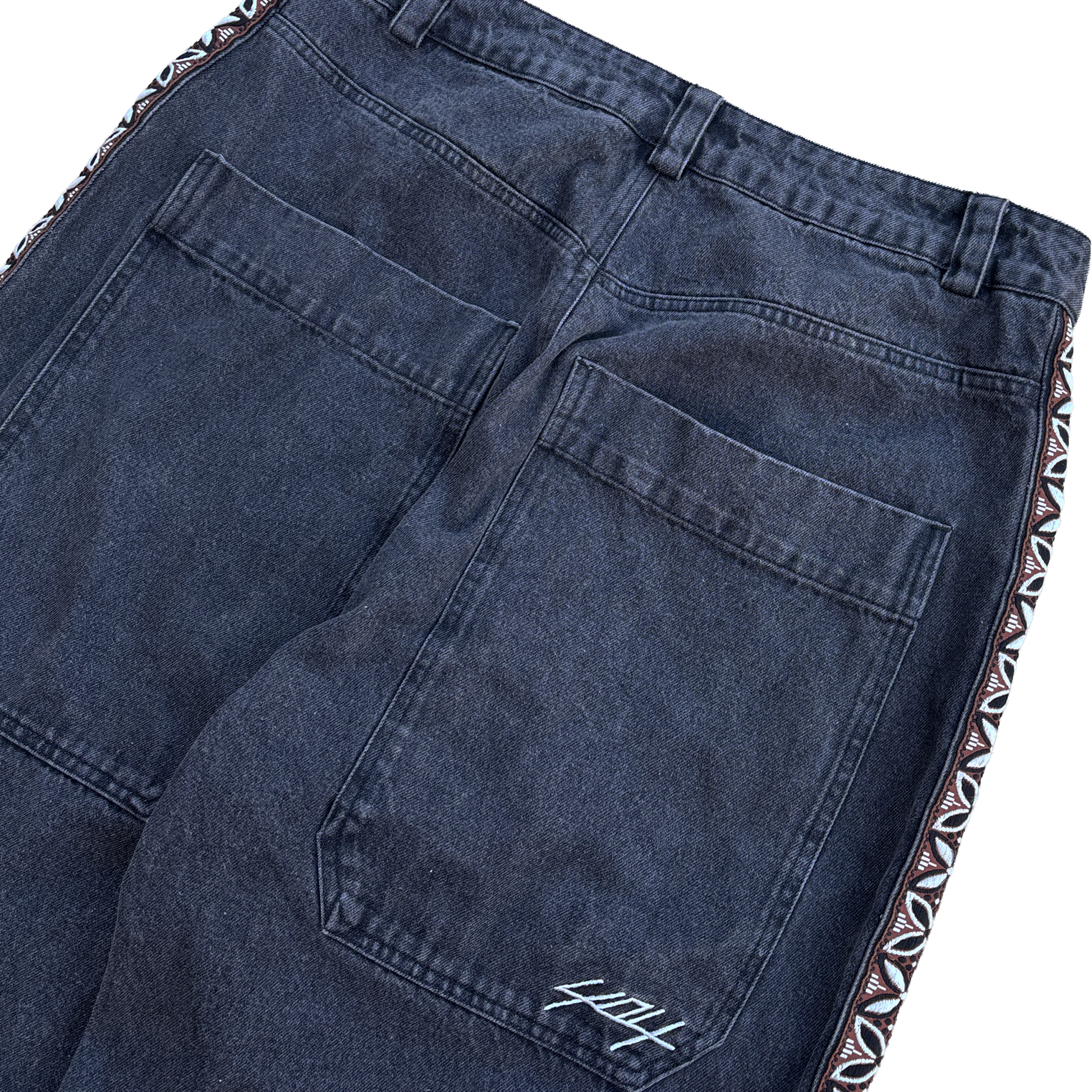 Inspired by our first drop of Aztek pants, these 100% cotton 13oz denim pants contain a unique feature with the brown side stripe going down each pant leg.