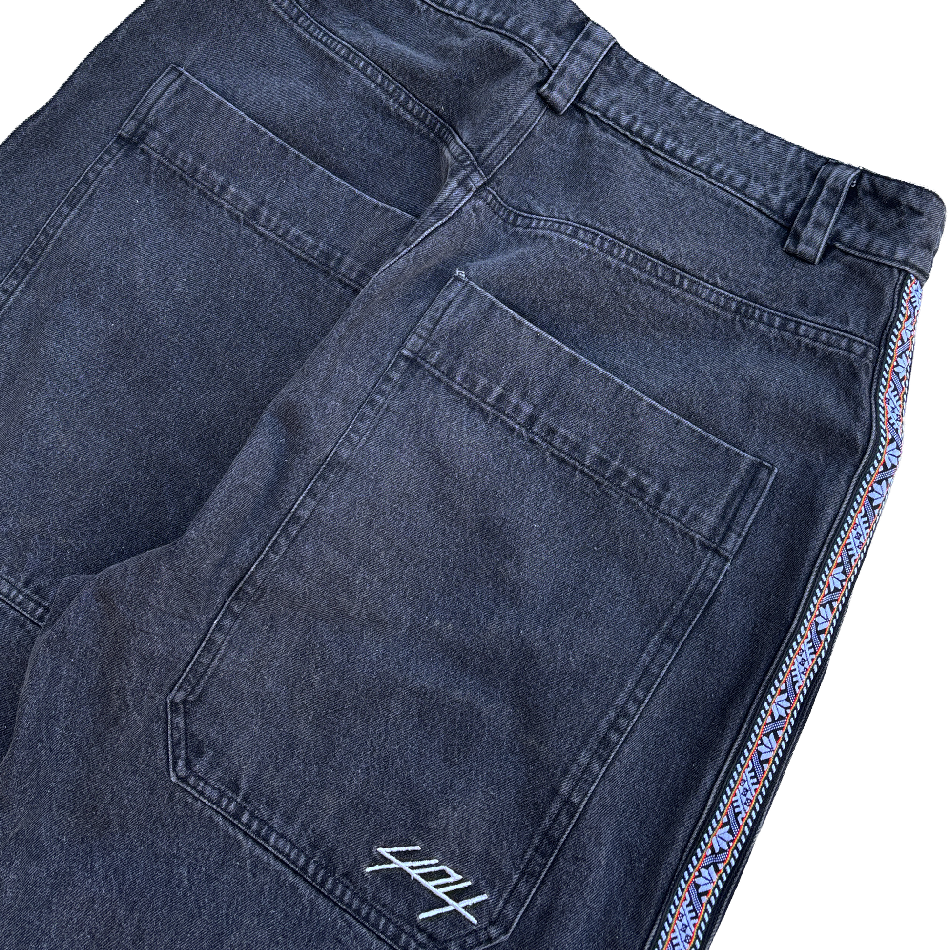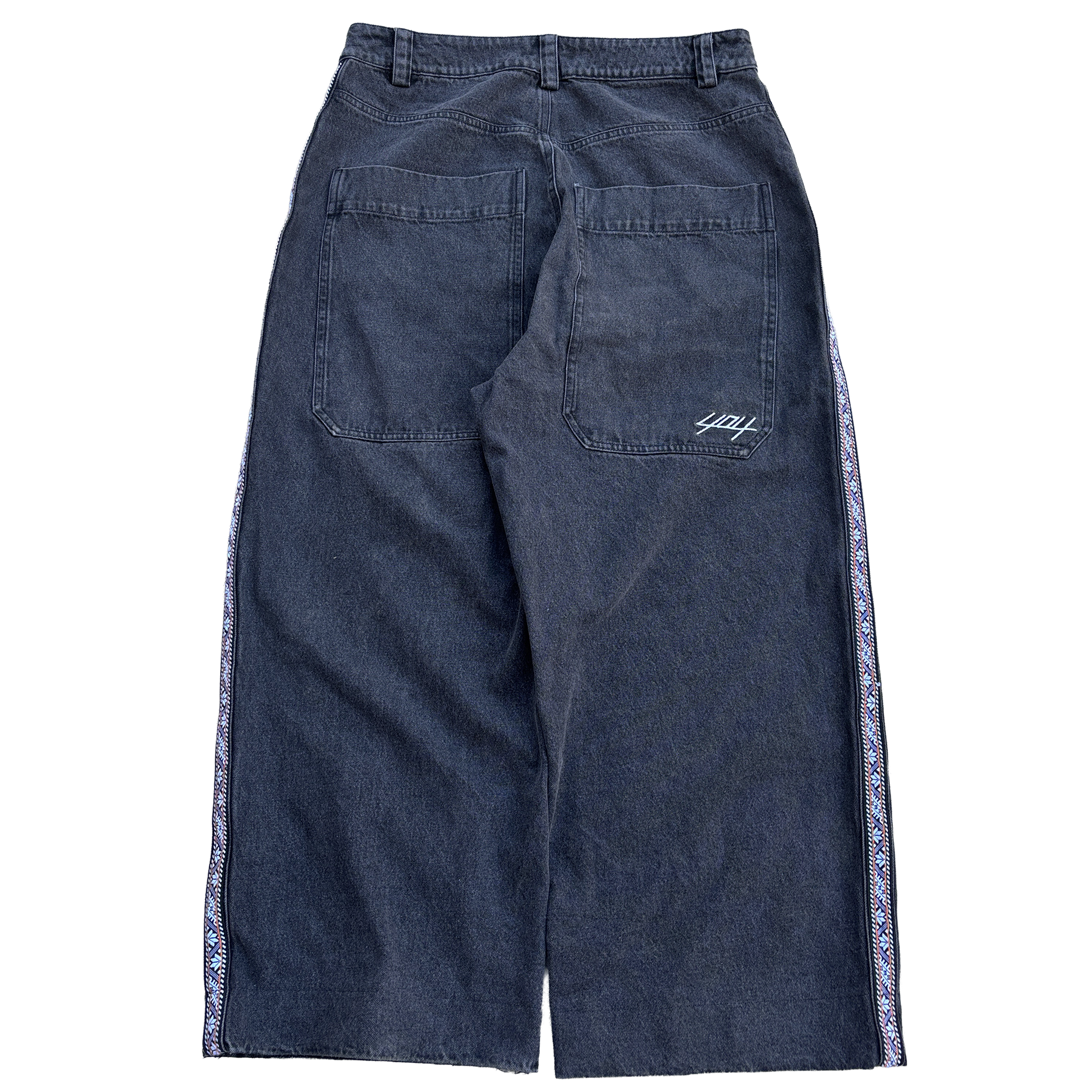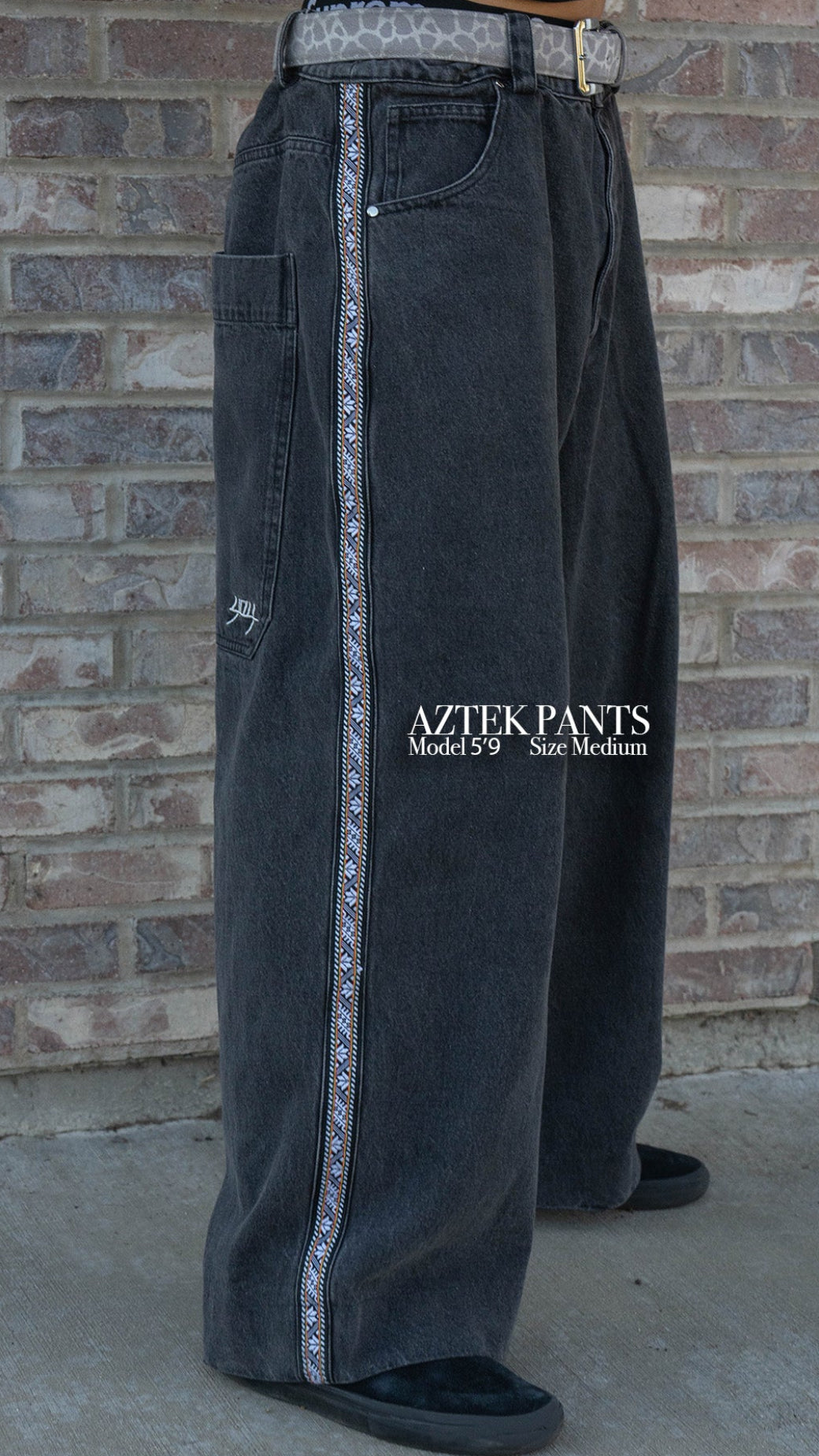 Inspired by our first drop of Aztek pants, these 100% cotton 13oz denim pants contain a unique feature with the Yellow side stripe going down each pant leg.